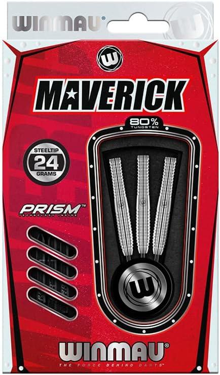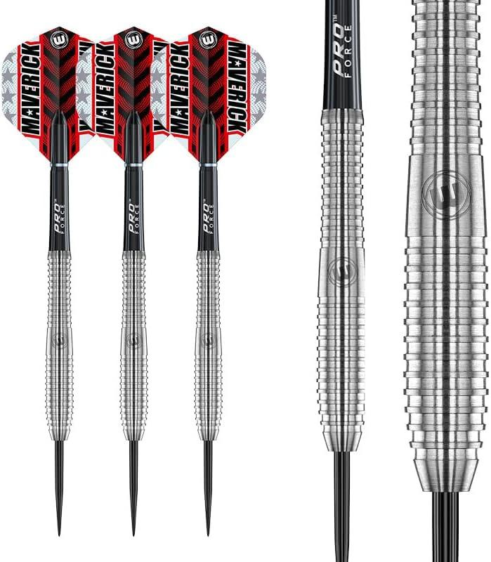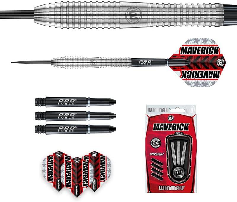 WINMAU Maverick 21-25 Gram Professional Steeltip Tungsten Darts Set with Flights and Stems (Shafts)(24g)